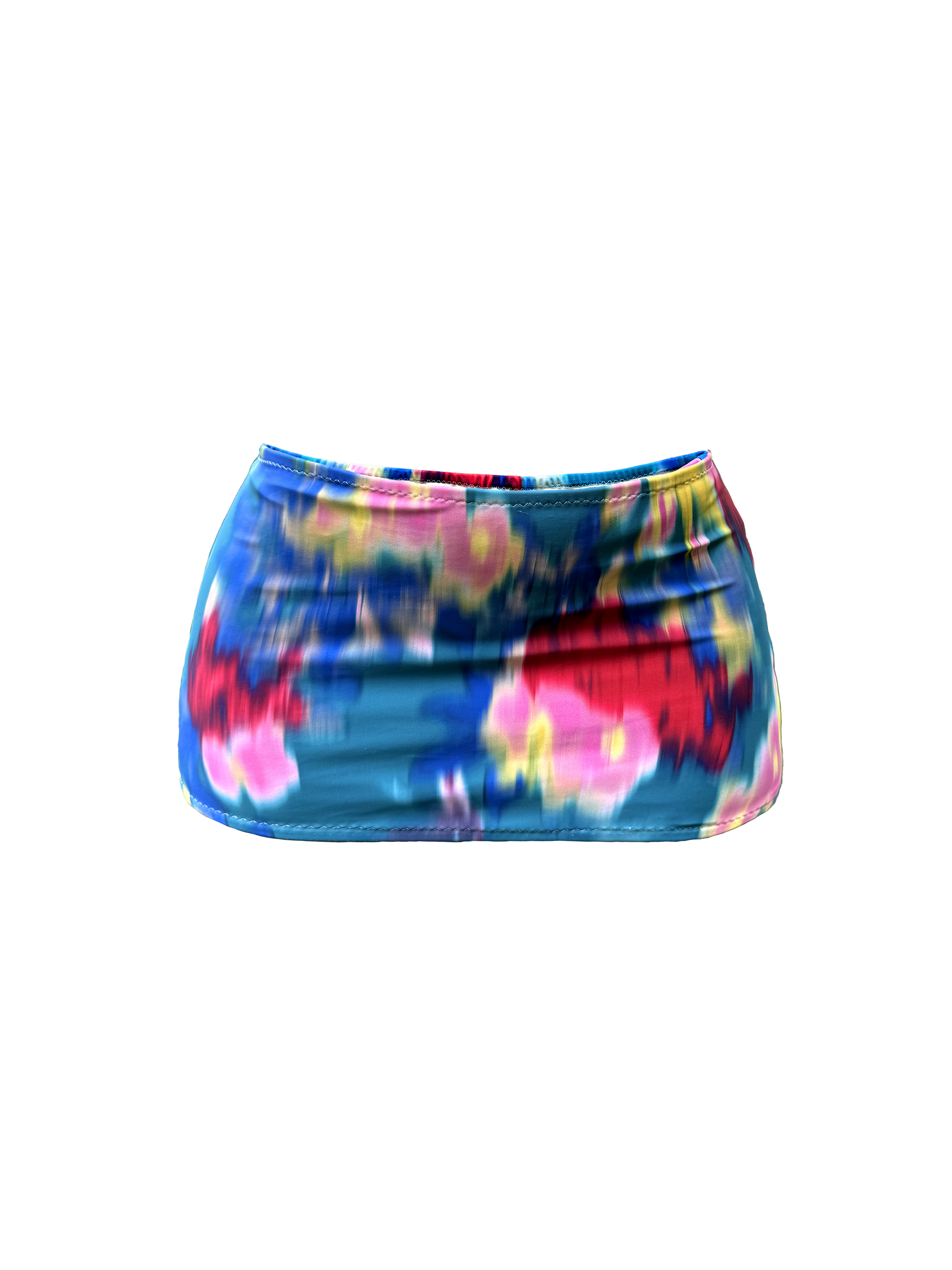 Multi-teal floral mini skirt. Double lined. EMSO rhinestone logo on back. Stretchy